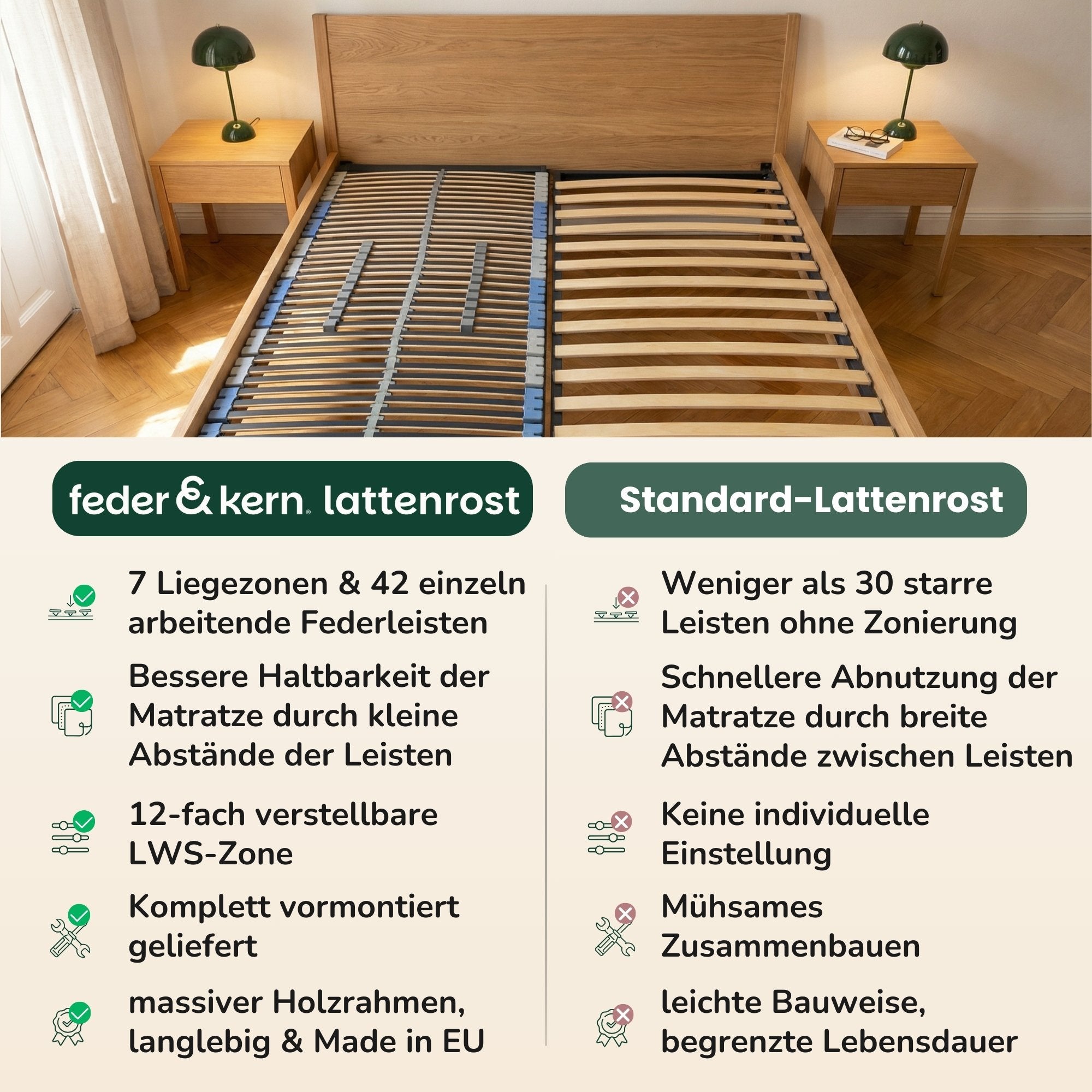 ✓ 10 Jahre auf alle Matratzen | ✗ Gesetzliches Minimum |
